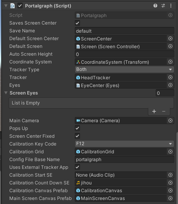 When checked, saves the local coordinates of the screen center (`ScreenCenter`) relative to Portalgraph, allowing coordinates to be retained when reopening the scene.